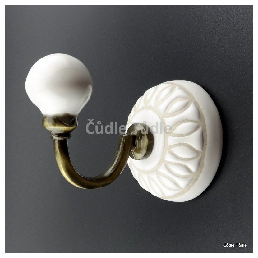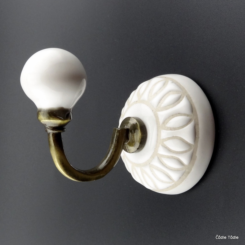 Věšák s bílou keramickou zdobou